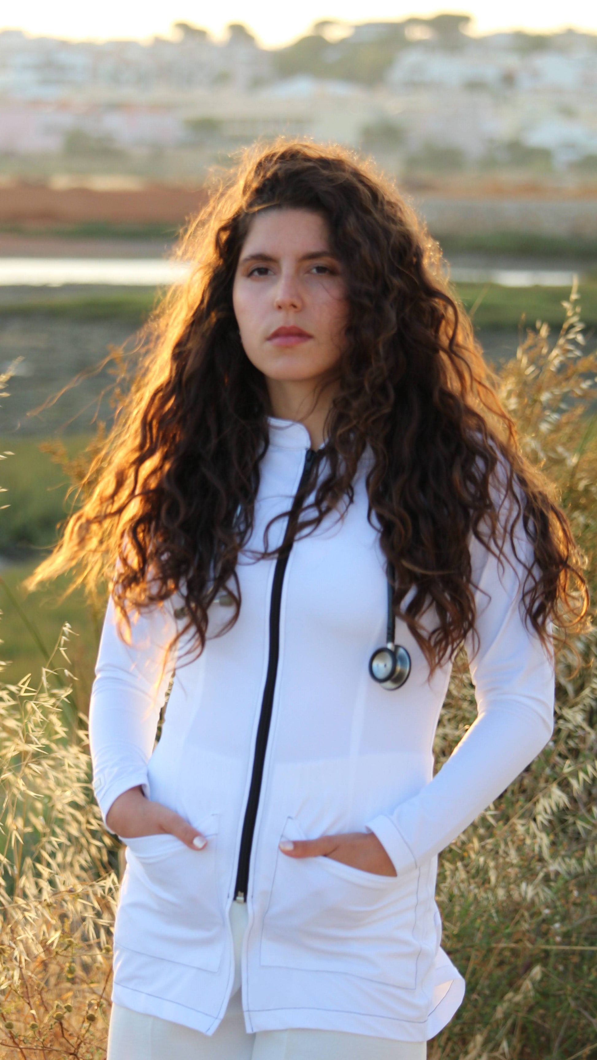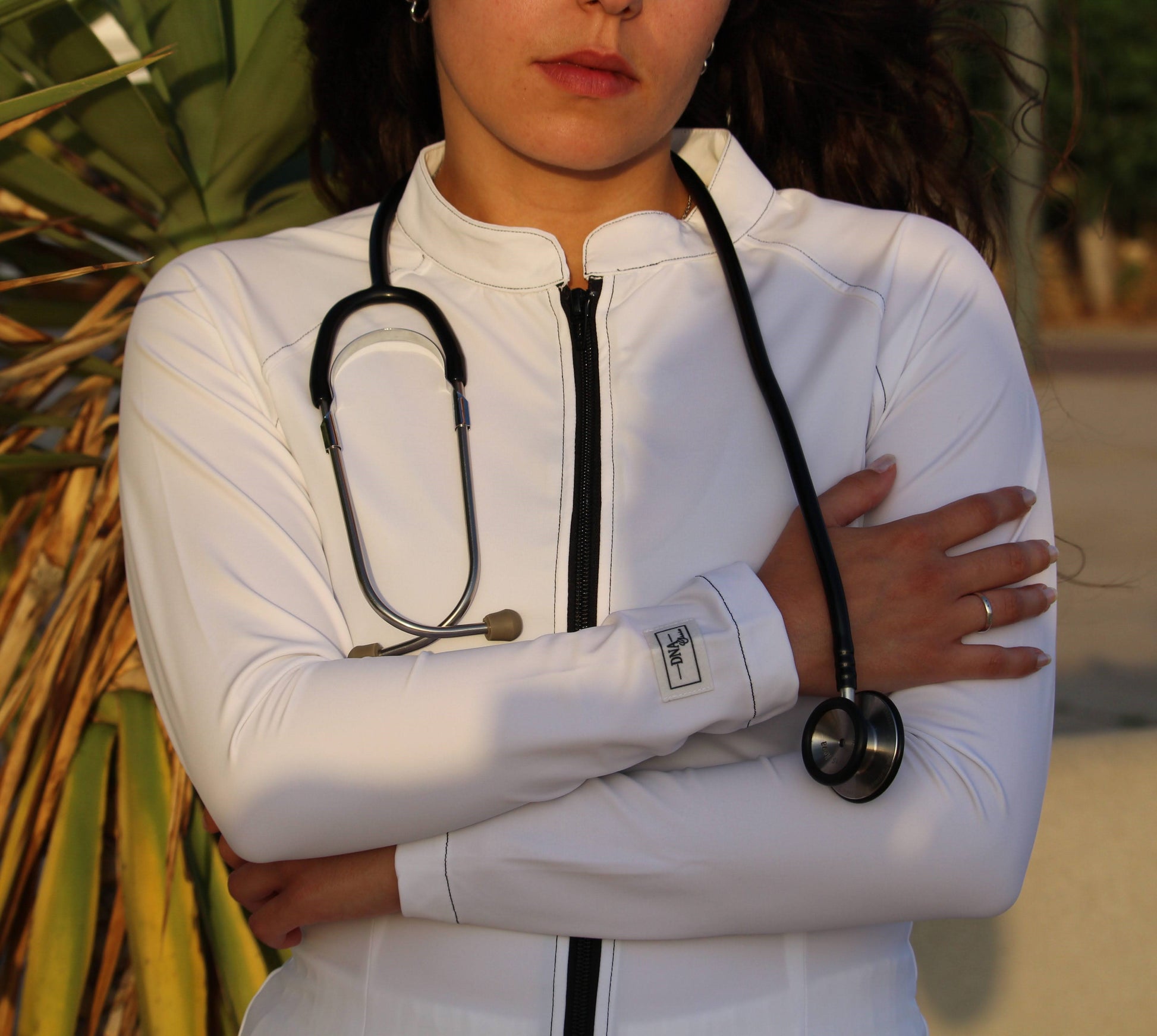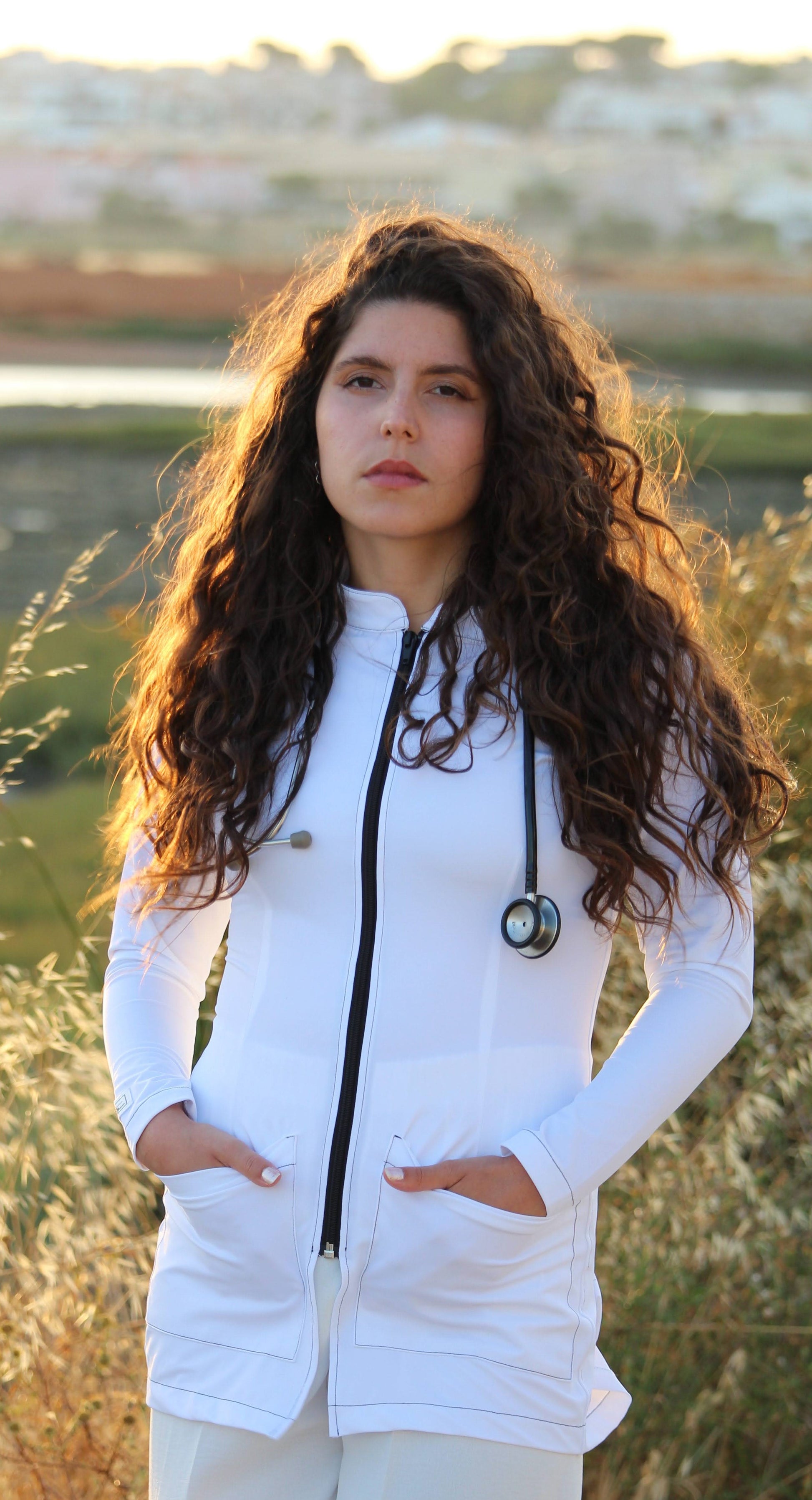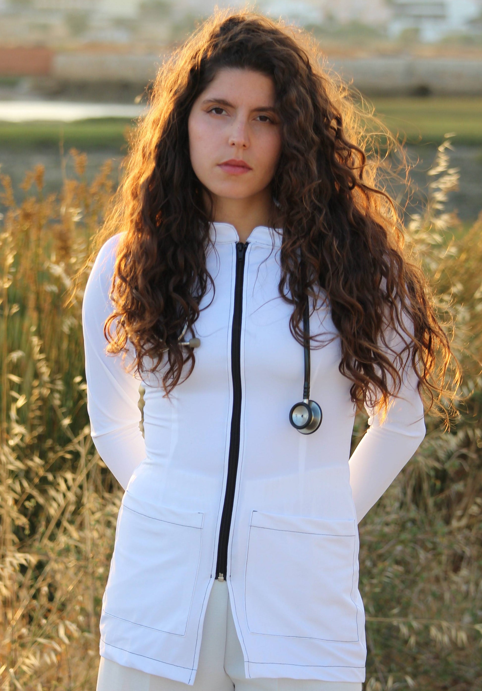 Pensando nas vastas horas que despendes a trabalhar criámos a bata Bianco Black de design exclusivo, nascida da união de beleza estética e confeção única com tecido desportivo com 22% de Elastano, resultando numa peça que realça a beleza individual dos(as) profissionais de saúde e estética, aliado ao máximo conforto.